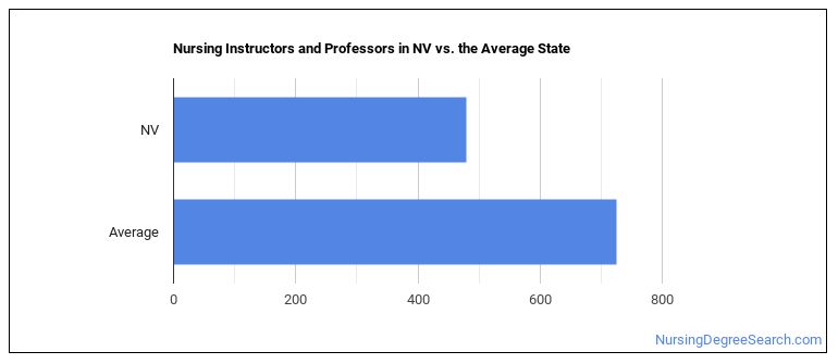 The typical state has 725 Nursing Instructors and Professors working in it, which means Nevada has fewer Nursing Instructors and Professors than average.