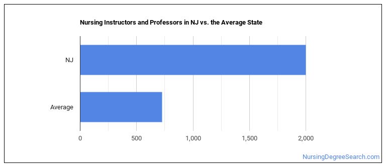The typical state has 725 Nursing Instructors and Professors working in it, which means New Jersey has more Nursing Instructors and Professors than average.