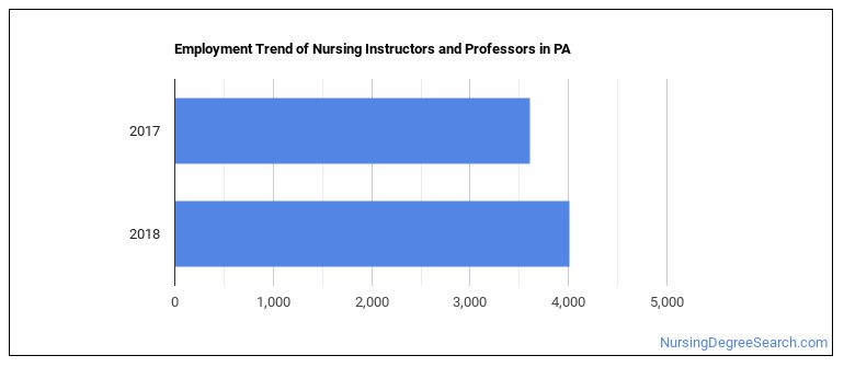 The BLS is projecting 340 annual Nursing Instructors and Professors job openings in Pennsylvania, and 3,910 total jobs in the year 2026.