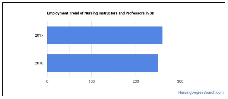 The BLS is projecting 30 annual Nursing Instructors and Professors job openings in South Dakota, and 320 total jobs in the year 2026.