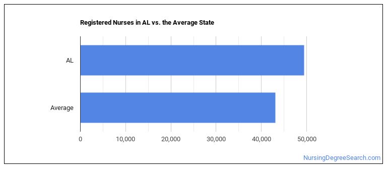 The typical state has 43,110 Registered Nurses working in it, which means Alabama has more Registered Nurses than average.