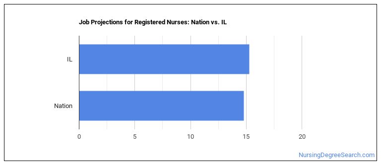 Projected employment for Registered Nurses in Illinois is growing faster than average.