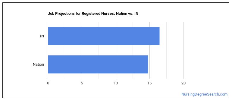 Projected employment for Registered Nurses in Indiana is growing faster than average.