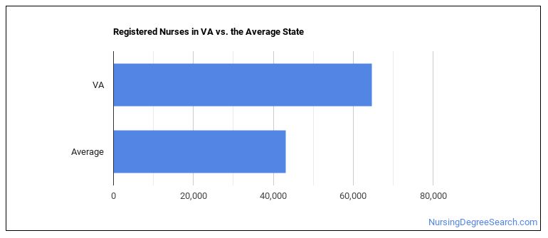 The typical state has 43,110 Registered Nurses working in it, which means Virginia has more Registered Nurses than average.