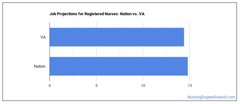 Projected employment for Registered Nurses in Virginia is growing faster than average.