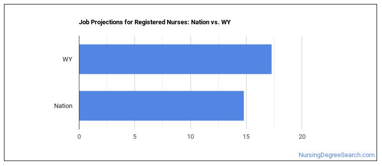 Projected employment for Registered Nurses in Wyoming is growing faster than average.