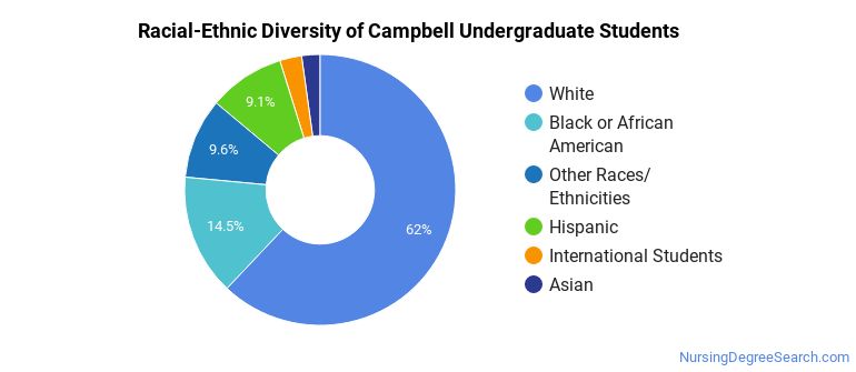 The racial-ethnic breakdown of Campbell University students is as follows.