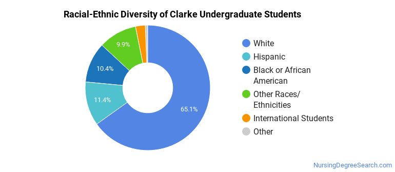 The racial-ethnic breakdown of Clarke University students is as follows.