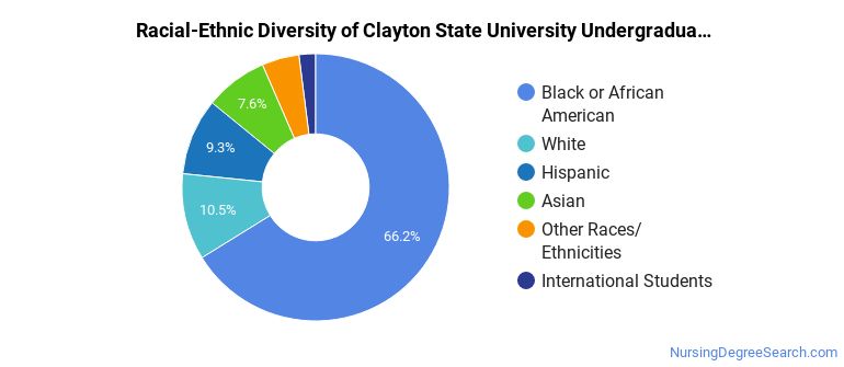 The racial-ethnic breakdown of Clayton State University students is as follows.