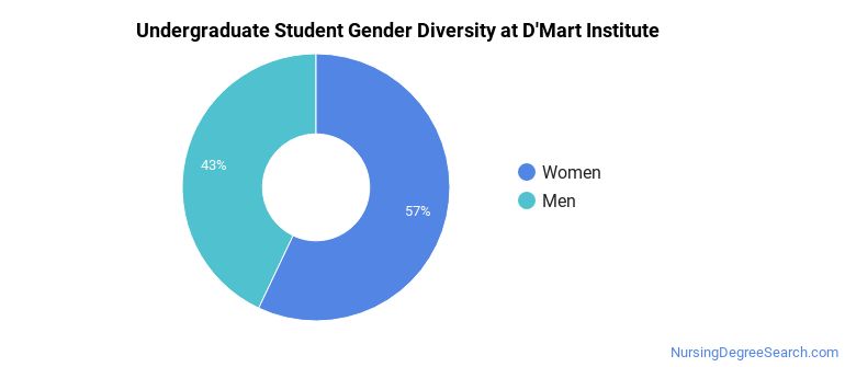 Of the 291 full-time undergraduates at D'Mart Institute, 43% are male and 57% are female.