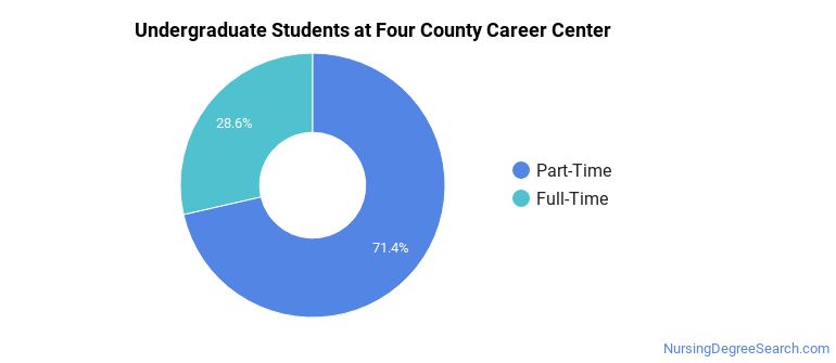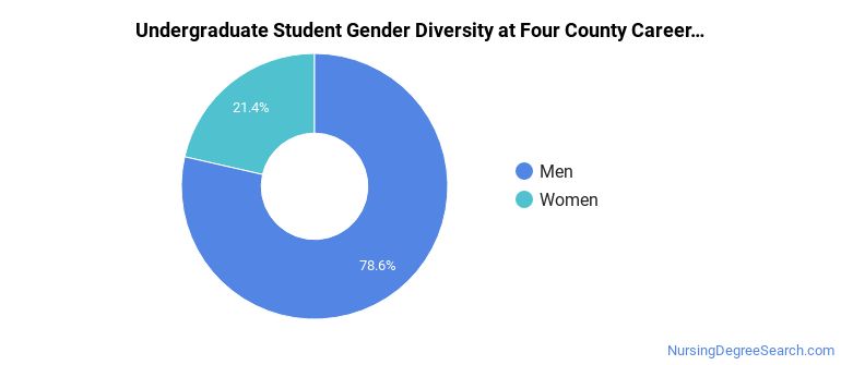 Of the 42 full-time undergraduates at Four County Career Center, 79% are male and 21% are female.
