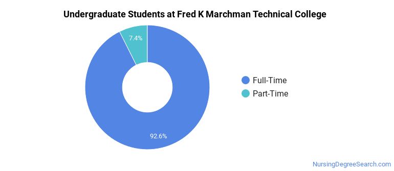 Of the 201 full-time undergraduates at Fred K Marchman Technical College, 57% are male and 43% are female.