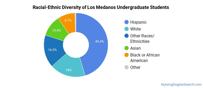 The racial-ethnic breakdown of Los Medanos College students is as follows.
