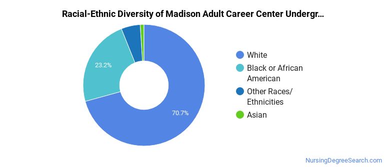 The racial-ethnic breakdown of Madison Adult Career Center students is as follows.