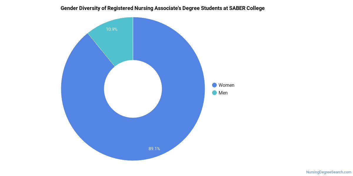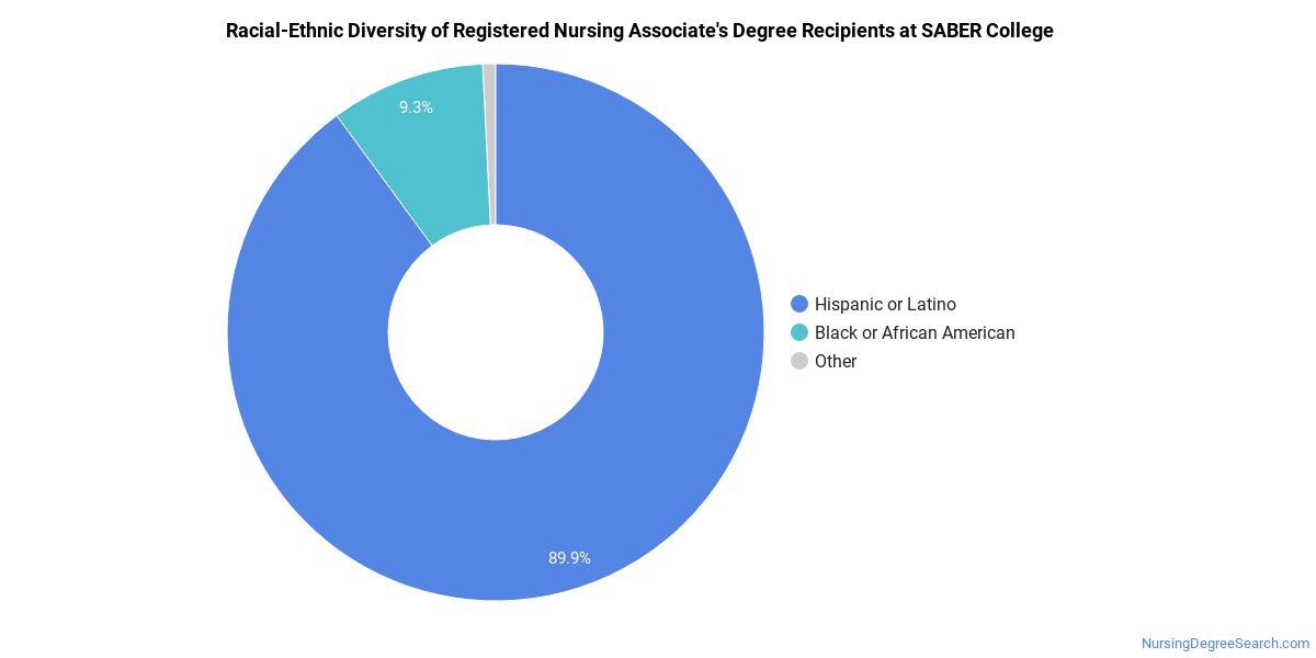 SABER College does a better job with serving racial-ethnic minorities than the typical school does. Its associate's program in registered nursing graduates 60% more racial-ethnic minorities than the nationwide average.*