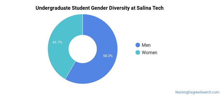 Of the 204 full-time undergraduates at Salina Tech, 58% are male and 42% are female.