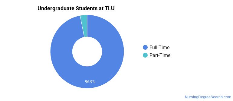 Of the 1,410 full-time undergraduates at TLU, 46% are male and 54% are female.