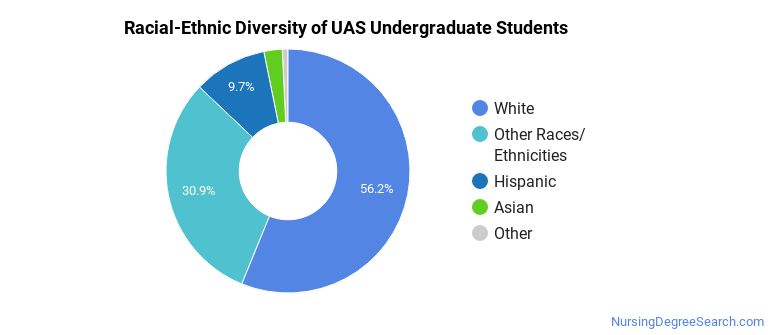 Of the 534 full-time undergraduates at UAS, 41% are male and 59% are female.