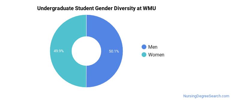 Of the 13,296 full-time undergraduates at WMU, 50% are male and 50% are female.