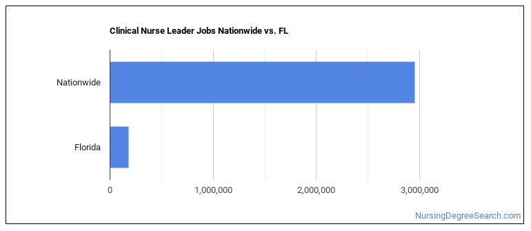 177,600 people in the state and 2,951,960 in the nation are employed in jobs related to clinical nurse leader.