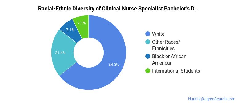 The racial-ethnic distribution of clinical nurse specialist bachelor’s degree students is as follows: