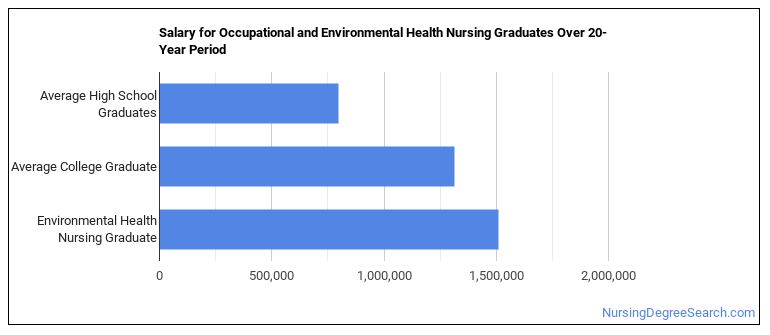 The median salary for someone in a career related to occupational and environmental health nursing is $75,510. This median refers to all degree levels, so the salary for a person with just a bachelor’s degree may be a little less and the one for a person with an advanced degree may be a little more.