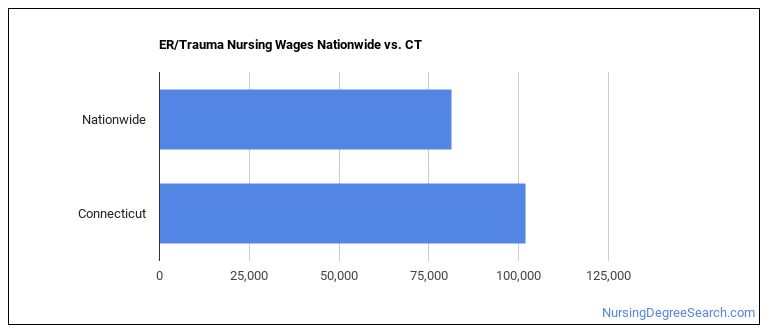 A typical salary for a emergency room/trauma nursing grad in the state is $101,760, compared to a typical salary of $81,350 nationwide.