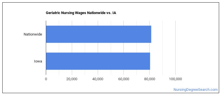 A typical salary for a geriatric nursing grad in the state is $80,490, compared to a typical salary of $81,350 nationwide.