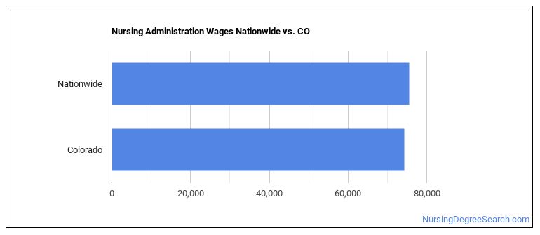 A typical salary for a nursing administration grad in the state is $74,240, compared to a typical salary of $75,510 nationwide.