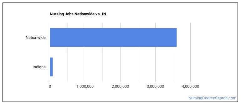 There are 82,110 people in the state and 3,609,760 people in the nation working in nursing jobs.