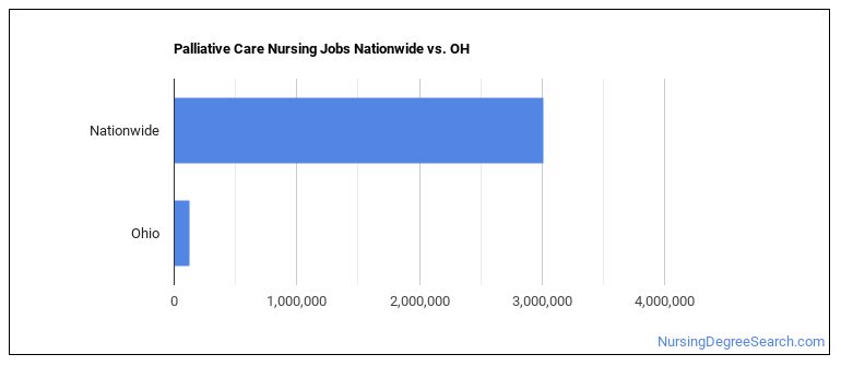 There are 128,150 people in the state and 3,007,670 people in the nation working in palliative care nursing jobs.